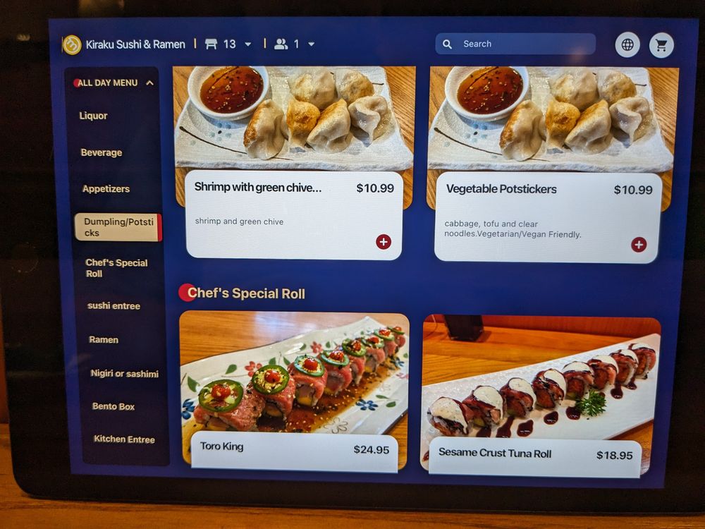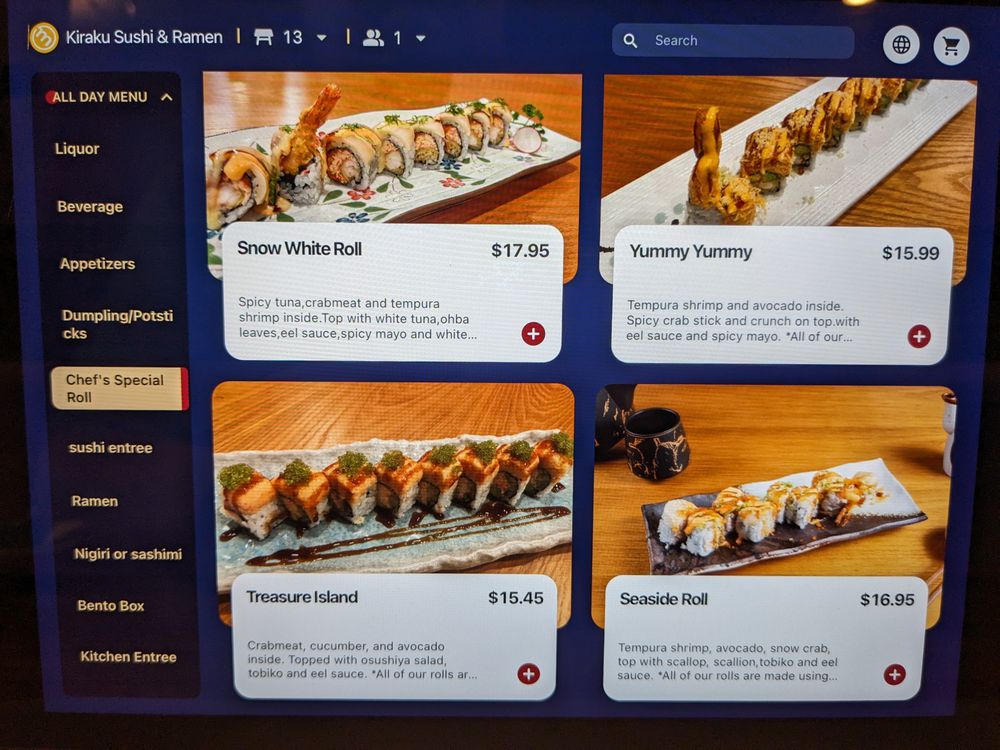Kiraku Sushi & Ramen offers a unique dining experience with robots leading you to your seat and a futuristic tablet menu for ordering. The extensive menu includes ramen, sushi rolls, fried rice, and donburis. Dishes are creatively brought to your table on a conveyor belt with rotating dolls. Customers rave about the Chirashi Don and sashimi options. The ambiance is fun and modern, perfect for a night out with friends or family. The friendly staff provides slow but attentive service, adding to the overall enjoyable experience. Whether you're a sushi enthusiast or looking for a new dining adventure, Kiraku Sushi & Ramen is a must-try in Santa Rosa.